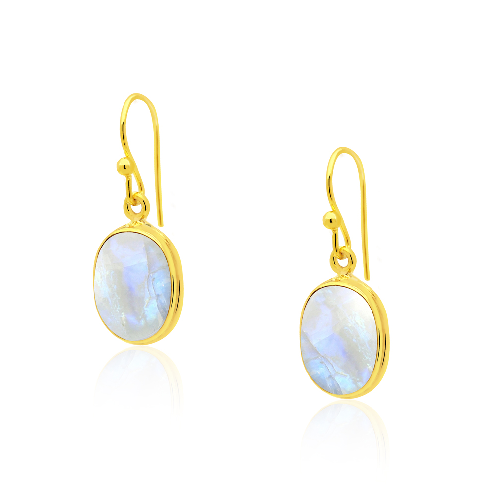 Kolczyki z kamieniem księżycowym srebrne pozłacane