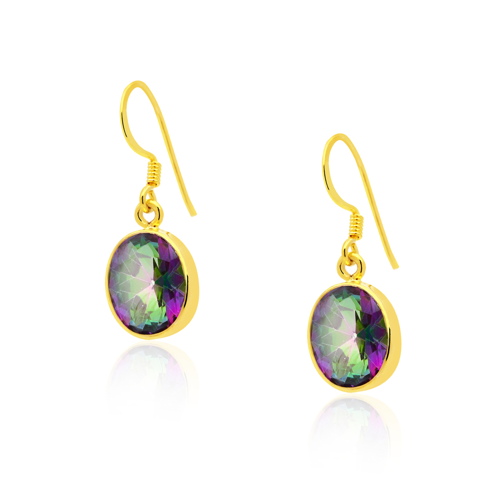 Kolczyki z magicznym topazem srebrne pozłacane wykonana z najwyższej próby srebra 925 – bez dodatku niklu, nie uczula. Biżuteria dodatkowo pokryta 3 warstwami 24 karatowego złota. Długość kolczyków: 31mm. Wielkość kamienia: 10×12 mm. Kolczyki ozdobione magicznym topazem o szlifie owalnym. Wyrób jubilerski wysokiej jakości wykonany przez mistrzów jubilerstwa z ogromną precyzją oraz dbałością o detale.