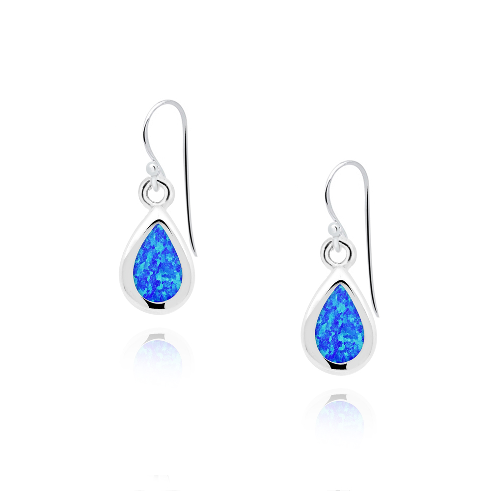 Kolczyki z niebieskim opalem łezki srebrne wykonane z najwyższej próby srebra 925 – bez dodatku niklu, nie uczulają. Biżuteria dodatkowo uszlachetniona 3 warstwami rodu. Kolczyki wiszące o długości 21mm ozdobione naturalnym niebieskim opalem. Wyrób jubilerski wykonany z ogromną precyzją przez mistrzów jubilerstwa.