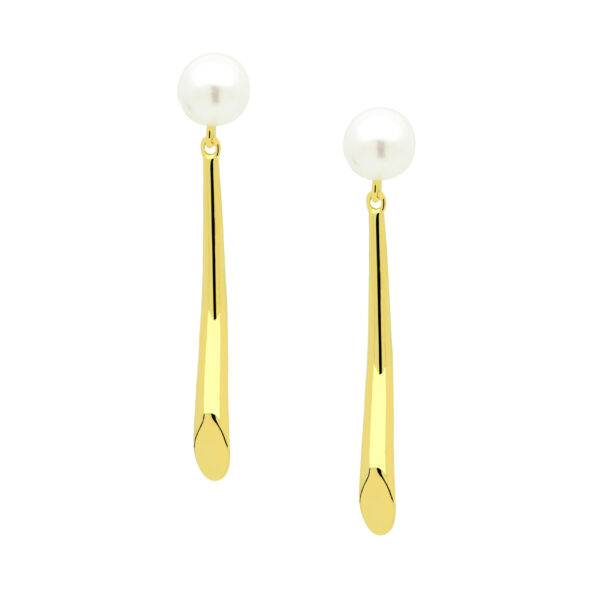 Kolczyki z perłą srebrne pozłacane wiszące patyczki