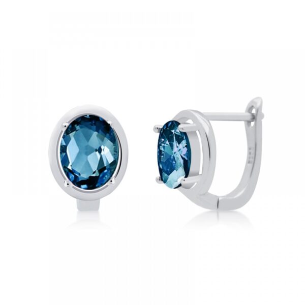 Kolczyki z topazem london blue srebrne angielskie. Biżuteria wykonana z najwyższej próby srebra 925 – bez niklu, nie uczula. Kolczyki dodatkowo pokryte 3 warstwami szlachetnego rodu. Wielkość kamienia: 6×8 mm. Kolczyki z zapieciami angielskimi o wysokości: 13 mm ozdobione naturalnym szlachetnym topazem london blue o szlifie owalnym. Wyrób jubilerski wysokiej jakości wykonany przez mistrzów jubilerstwa z ogromną precyzją oraz dbałością o detale.