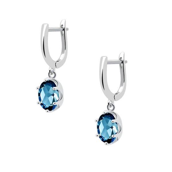 Kolczyki z topazem london blue srebrne. Biżuteria wykonana z najwyższej próby srebra 925 – bez niklu, nie uczula. Kolczyki dodatkowo pokryte 3 warstwami szlachetnego rodu. Długość kolczyków: 25mm. Wielkość kamienia: 7×9 mm. Kolczyki ozdobione naturalnym szlachetnym topazem london blue o szlifie owalnym. Kolczyki zapinane na zapięcie angielskie. Wyrób jubilerski wysokiej jakości wykonany przez mistrzów jubilerstwa z ogromną precyzją oraz dbałością o detale.