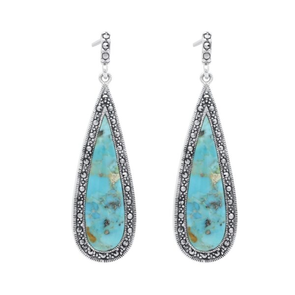 Kolczyki z turkusem i markazytami srebrne długie wiszące