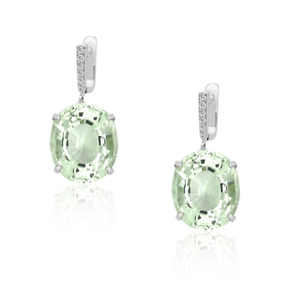 Unikatowe kolczyki z zielonymi topazami o najwyższej klasie AAA, najwyższej jakości oraz o najwyższym stopniu przeźroczystości. Jakość kamieni jest porównywalna z klasą diamentu o Czystości VVS. Kamienie o szlifie owalnym nadanym ręcznie w najlepszej manufakturze szlifierskiej kamieni naturalnych na świecie w Jaipur w Indiach. Wykonane przez profesjonalnych szlifierzy specjalizujących się w kunszcie szlifierstwa jubilerskiego. Kamienie wydobyte w Birmie, regionie o unikalnych złożach topazów na świecie. Topazy są cenione przez najbardziej prestiżowe domy mody takie jak: Cartier, Tiffany, Bvlgari. Sięgają po nie uznani projektanci światowego jubilerstwa przy tworzeniu unikalnych kolekcji.