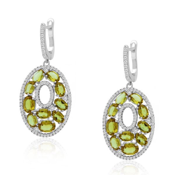 Kolczyki z zultanitami oraz cyrkoniami srebrne eleganckie wykonane z najwyższej próby srebra 925 – bez dodatku niklu, nie uczulają. Biżuteria dodatkowo pokryta 3 warstwami szlachetnego rodu. Wielkość kolczyków: 21x45mm. Wielkość kamieni: 5x7mm. Kolczyki zapinane na zapięcie angielskie. Bogato ozdobione naturalnymi szlachetnymi zultanitami o szlifie owalnym oraz cyrkoniami o szlifie brylantowym. Przejrzystość cyrkonii: klasa pierwsza AAAAA+. Wysokiej klasy cyrkonie nadają delikatny błyszczący efekt. Wyrób jubilerski wysokiej jakości wykonany przez mistrzów jubilerstwa z ogromną precyzją oraz dbałością o detale.