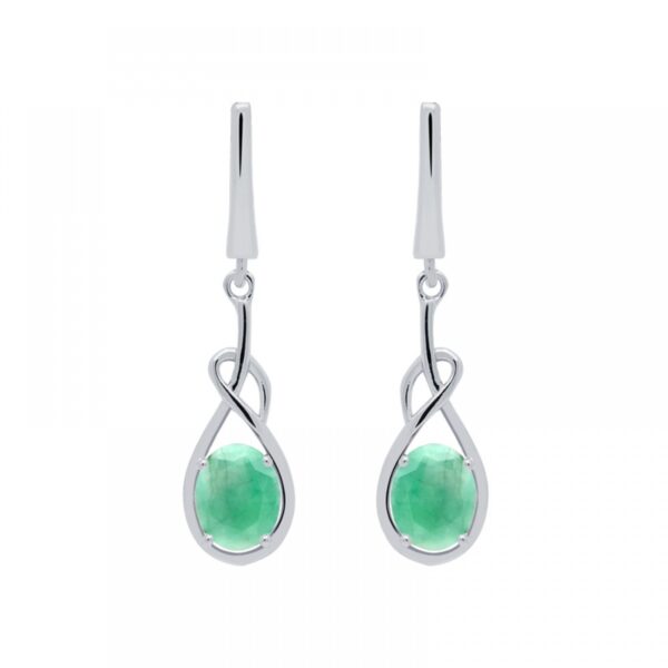 Kolczyki ze szmaragdami srebrne angielskie wiszące. Kolczyki wykonane ze srebra próby 925, dodatkowo uszlachetnione rodem. Kolczyki ozdobione naturalnym kamieniem szlachetnym- Szmaragdem. Kamień zawiera inkluzje. Wysokość kolczyków 36 mm. Wielkość kamieni 8×6 mm. Kolczyki na zapięcie angielskie.