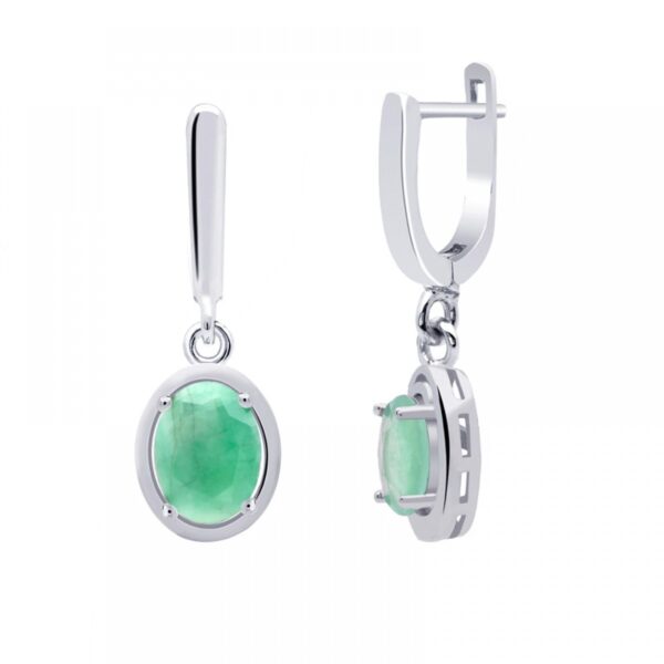 Kolczyki ze szmaragdem srebrne angielskie wiszące. Kolczyki wykonane ze srebra próby 925, dodatkowo uszlachetnione rodem. Kolczyki ozdobione naturalnym kamieniem szlachetnym- Szmaragdem. Kamień zawiera inkluzje. Wysokość kolczyków 28 mm. Wielkość kamieni 8×6 mm. Kolczyki na zapięcie angielskie.