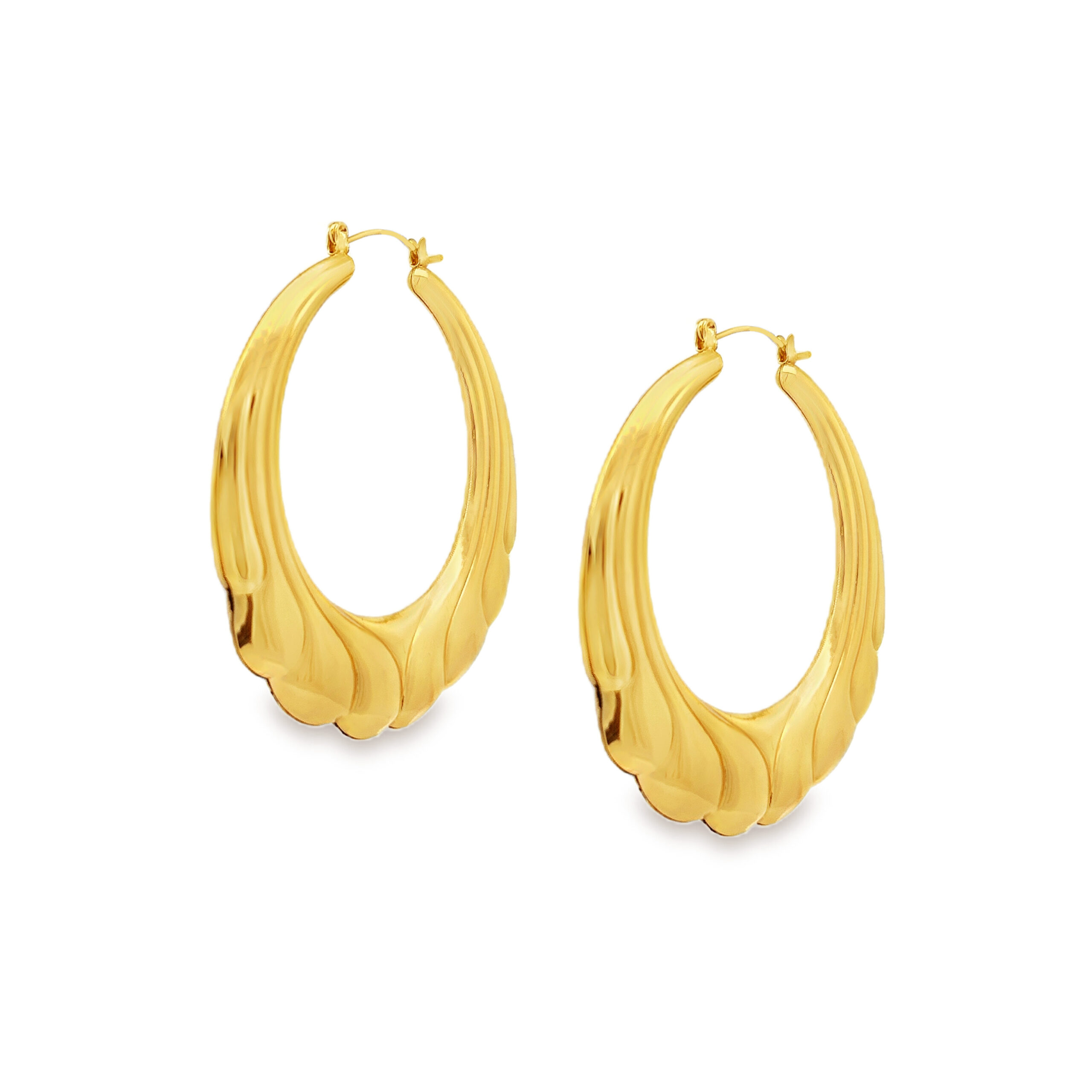 Te wyjątkowe kolczyki ze stali szlachetnej wyróżniają się oryginalnym kształtem i delikatnym zdobieniem, które dodaje im lekkości i nowoczesnego charakteru. Złota powłoka pięknie odbija światło, sprawiając, że biżuteria staje się efektownym, ale nadal subtelnym akcentem każdej stylizacji.