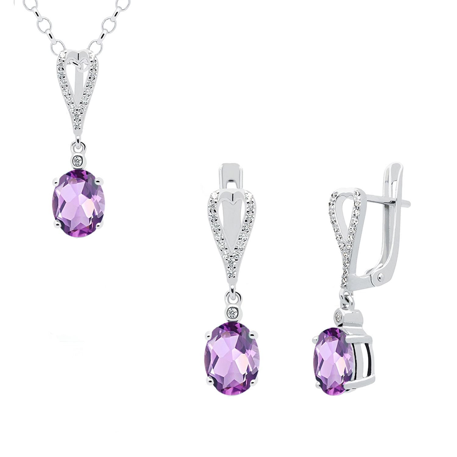 Komplet srebrny ozdobiony ametystem – kolczyki i zawieszka