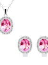 Biżuteria bogato ozdobiona białymi oraz różowymi cyrkoniami o szlifie owalnym oraz brylantowym. Wysokiej klasy cyrkonia nadaje delikatny błyszczący efekt. Wyrób jubilerski wysokiej jakości wykonany przez mistrzów jubilerstwa z ogromną precyzją oraz dbałością o detale.