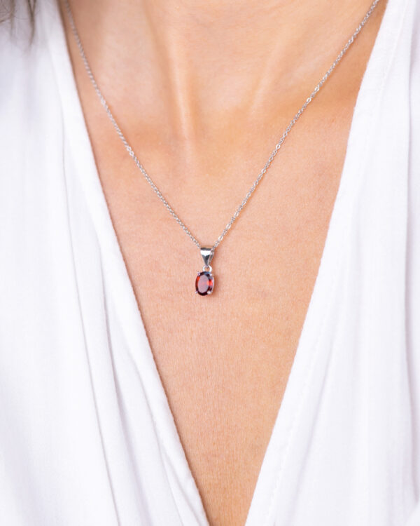 Komplet srebrny z granatem subtelny – kolczyki z zawieszką wykonany z najwyższej próby srebra 925 – bez niklu, nie uczula. Biżuteria dodatkowo pokryta 3 warstwami szlachetnego rodu. Długość kolczyków: 14mm. Długość zawieszki: 15mm. Biżuteria ozdobiona naturalnymi granatami o szlifie owalnym o wielkości 5x7mm. Wyrób jubilerski wysokiej jakości wykonany przez mistrzów jubilerstwa z ogromną precyzją oraz dbałością o detale.