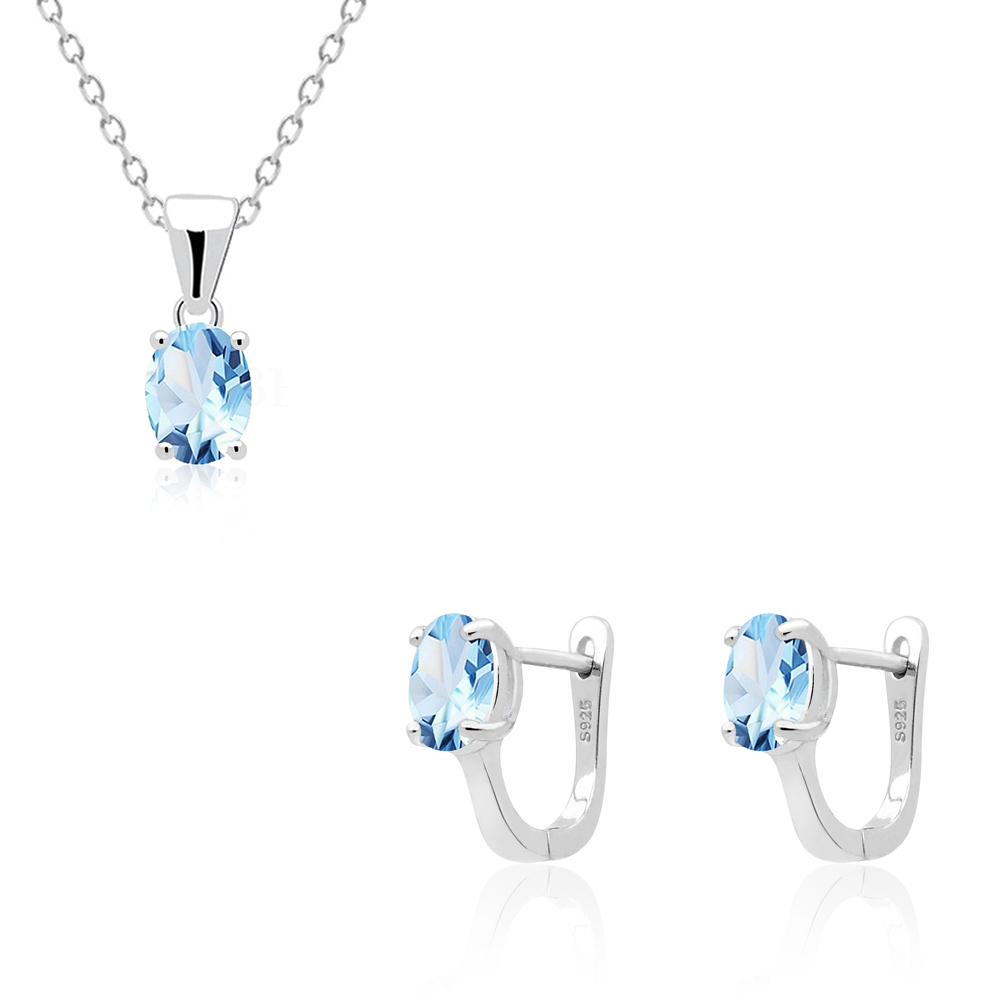 Komplet srebrny z niebieskim topazem subtelny – kolczyki z zawieszką wykonany z najwyższej próby srebra 925 – bez niklu, nie uczula. Biżuteria dodatkowo pokryta 3 warstwami szlachetnego rodu. Długość kolczyków: 14mm. Długość zawieszki: 15mm. Biżuteria ozdobiona naturalnymi niebieskimi topazami o szlifie owalnym o wielkości 5x7mm. Wyrób jubilerski wysokiej jakości wykonany przez mistrzów jubilerstwa z ogromną precyzją oraz dbałością o detale.