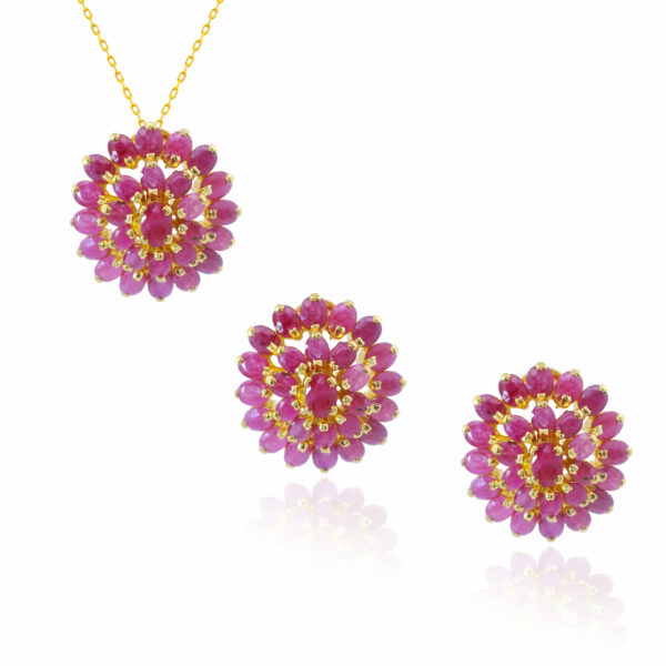 Podaruj sobie lub bliskiej osobie biżuterię, która łączy naturalne piękno i najwyższą jakość – naturalne rubiny w tym komplecie zachwycą każdego!