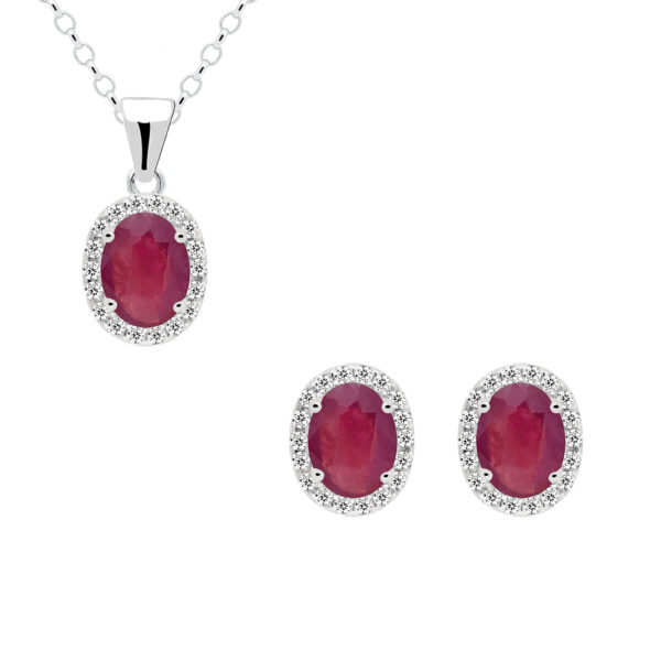 Komplet z rubinem srebrny z białą cyrkonią – kolczyki z zawieszką