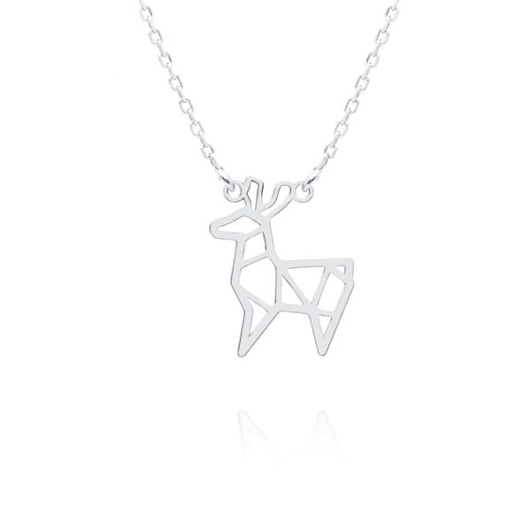 Naszyjnik ozdobiony zawieszka w kształcie sarenki origami, wykonany ze srebra próby 925 uszlachetnionego warstwą rodu. Ten delikatny naszyjnik z kolekcji „Celebrytka” idealnie podkreśla kobiecą subtelność oraz piękno. Idealny do każdej stylizacji. Wielkość zawieszki 20×12 mm. Długość naszyjnika 42-45 cm.
