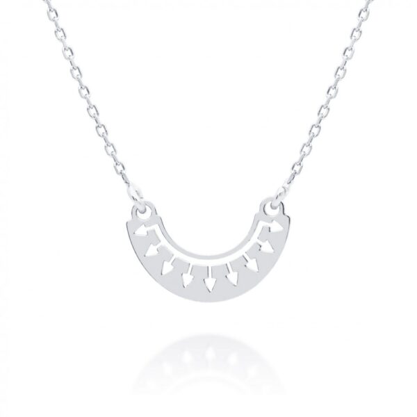 Naszyjnik wykonany ze srebra próby 925 oraz uszlachetniony warstwą rodu. Szerokość zawieszki: 15 mm, wysokość zawieszki: 8 mm. Długość naszyjnika 42-45 cm.