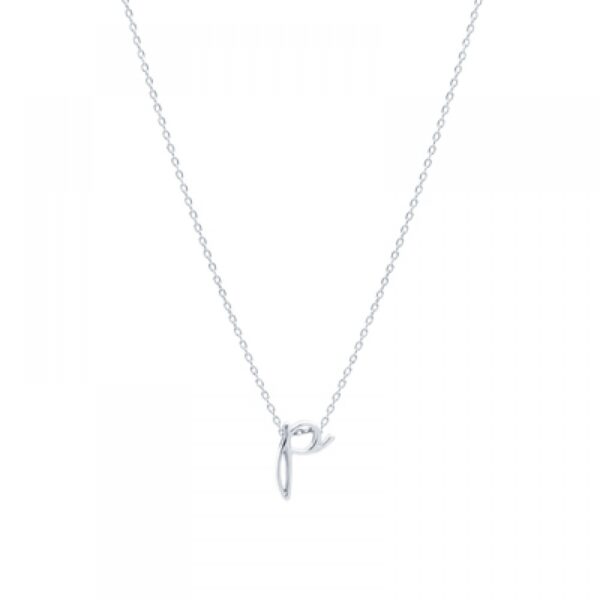 Naszyjnik z przywieszką w kształcie literki p. Naszyjnik wykonany ze srebra próby 925. Wielkość przywieszki 1 cm. Długość łańcuszka 42-45 cm.