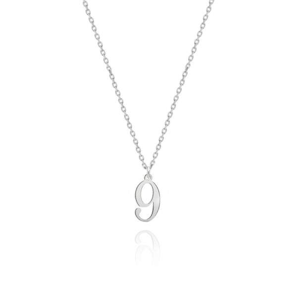 Naszyjnik cyferka 9 srebrny – numerologia. Naszyjnik z cyfrą 9, wykonany z najwyższej próby srebra 925 – bez dodatku niklu, nie uczula. Naszyjnik uszlachetniony 3 warstwami szlachetnego rodu. Długość naszyjnika: 39-44 cm. Wielkość cyferki 9: 5×10 mm. Zawieszka cyfra 9 o strukturze gładkiej, polerowanej i błyszczącej, zawieszona na łańcuszku o splocie ankier. Splot ankier jest jednym z najmocniejszych splotów, odpornym na zerwania.