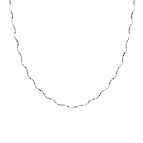 Naszyjnik falowany diamentowany srebro wykonany z najwyższej próby srebra 925 – bez niklu, nie uczula. Biżuteria dodatkowo pokryta 3 warstwami szlachetnego rodu. Naszyjnik o regulowanej długości 38-44 cm. Wyrób jubilerski wysokiej jakości wykonany przez mistrzów jubilerstwa z ogromną precyzją oraz dbałością o detale.