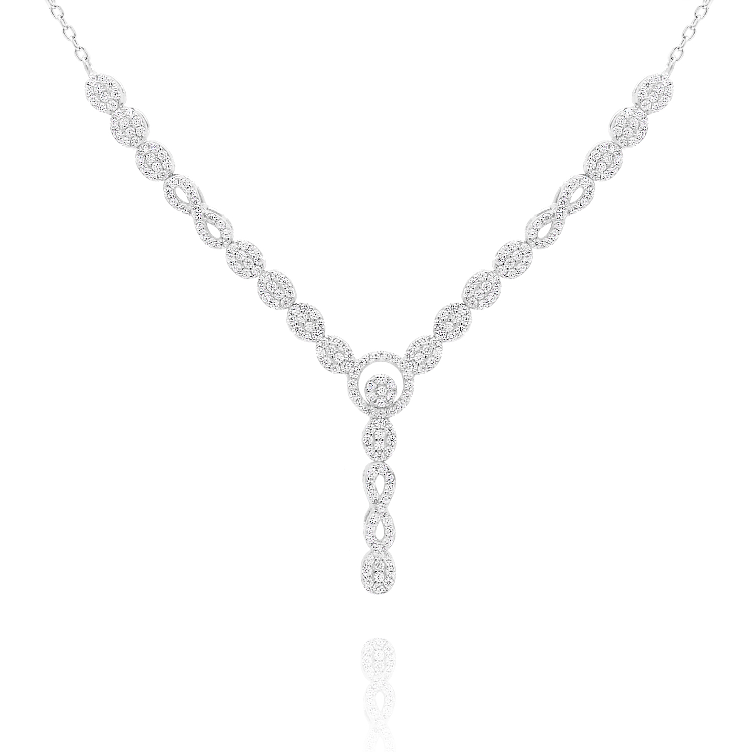 Naszyjnik kolia wysadzania cyrkoniami subtelna srebrna wykonany z najwyższej próby srebra 925 – bez niklu, nie uczula. Biżuteria dodatkowo pokryta 3 warstwami szlachetnego rodu. Długość naszyjnika: 43-47cm, długość elementu wiszącego: 2,5cm. Kolia ozdobiona znakiem nieskończoności oraz cyrkoniami o szlifie brylantowym o przejrzystości: AAAAA+, klasa pierwsza. Wysokiej klasy cyrkonia nadaje delikatny błyszczący efekt. Wyrób jubilerski wysokiej jakości wykonany przez mistrzów jubilerstwa z ogromną precyzją oraz dbałością o detale.