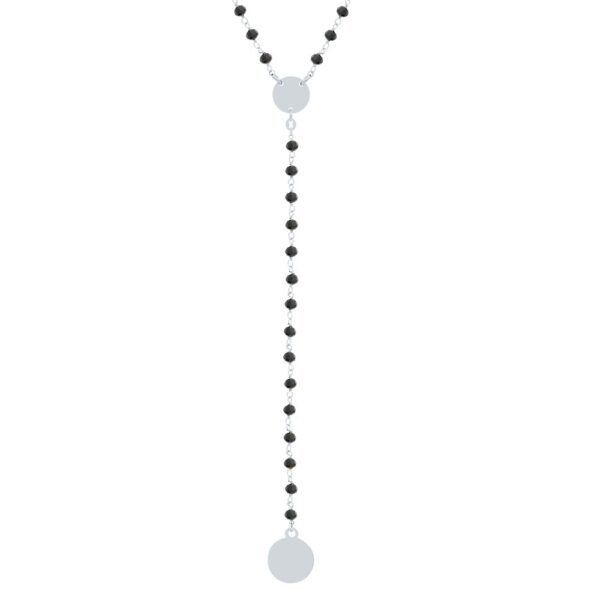 Naszyjnik krawatka srebrna kółko z czarnymi koralikami 110 cm