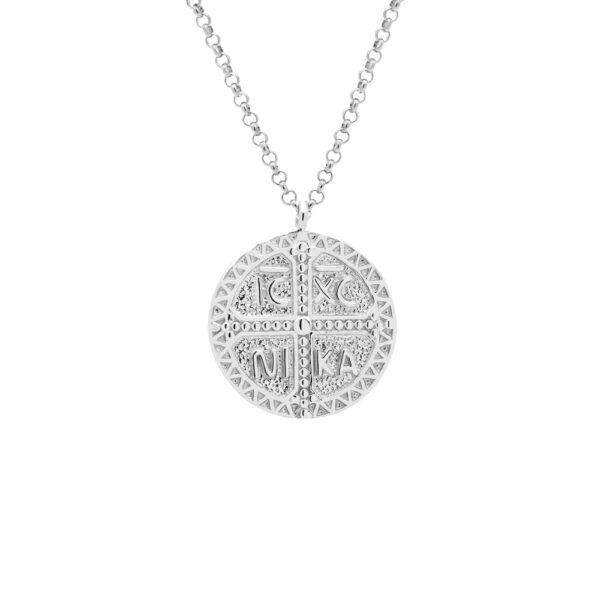 Naszyjnik Amulet Talizman z motywem Krzyża Solarnego wykonany z najwyższej Próby Srebra 925 – bez dodatku niklu, nie uczula. Naszyjnik pokryty 3 warstwami szlachetnego Rodu. Długość naszyjnika: 38-43 cm. Średnica zawieszki: 17 mm.