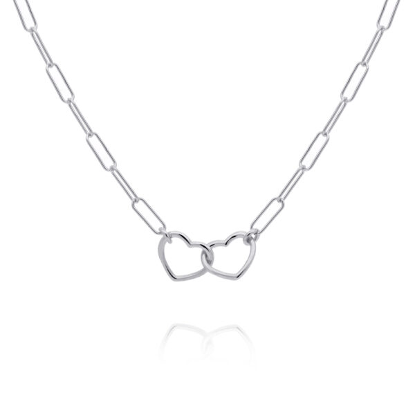 Naszyjnik łańcuch dwa serca srebrny. Naszyjnik łańcuch wykonany z najwyższej próby srebra 925 – bez dodatku niklu, nie uczula. Naszyjnik pokryty 3 warstwami szlachetnego rodu. Naszyjnik regulowany o długości: 43-46,5 cm. Biżuteria najwyższej jakości, wykonana z precyzją i dbałością o każdy detal przez mistrzów sztuki jubilerskiej. Naszyjnik ozdobiony zawieszką w kształcie dwóch serduszek.
