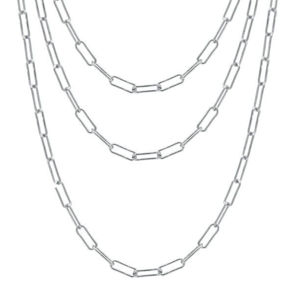 Naszyjnik łańcuch srebrny potrójny. Biżuteria modowa wykonana z najwyższej próby srebra 925 – bez dodatku niklu, nie uczula. Naszyjnik pokryty 3 warstwami szlachetnego rodu. Długość naszyjnika: 60-63 cm. Wyrób jubilerski o bardzo unikatowym wzorze wykonany z ogromną precyzją oraz mistrzowskim kunsztem w każdym detalu.