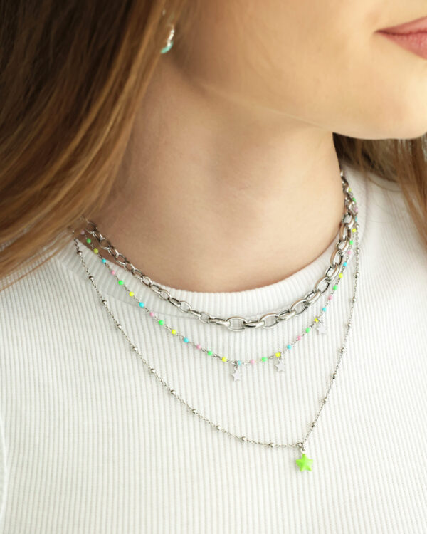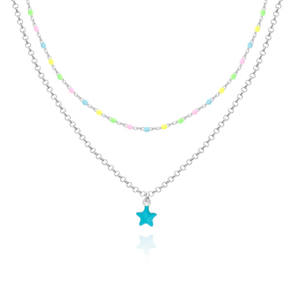 Naszyjnik podwójny kolorowy z niebieską gwiazdką srebrny
