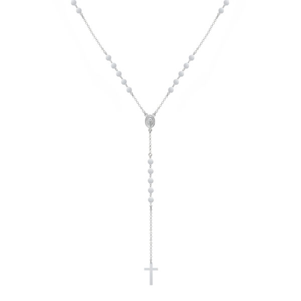 Różaniec wykonany ze srebra próby 925. Różaniec dodatkowo uszlachetniony warstwą rodu. Obwód różańca 58 cm. Długość przedłużenia: 12.5 cm. Wielkość krzyża: 10×15 mm. Różaniec stanowi idealne dopełnienie Twojej kolekcji biżuterii. Naszyjnik ten podkreśli Twoją stylizację nadając jej wyjątkowego charakteru.