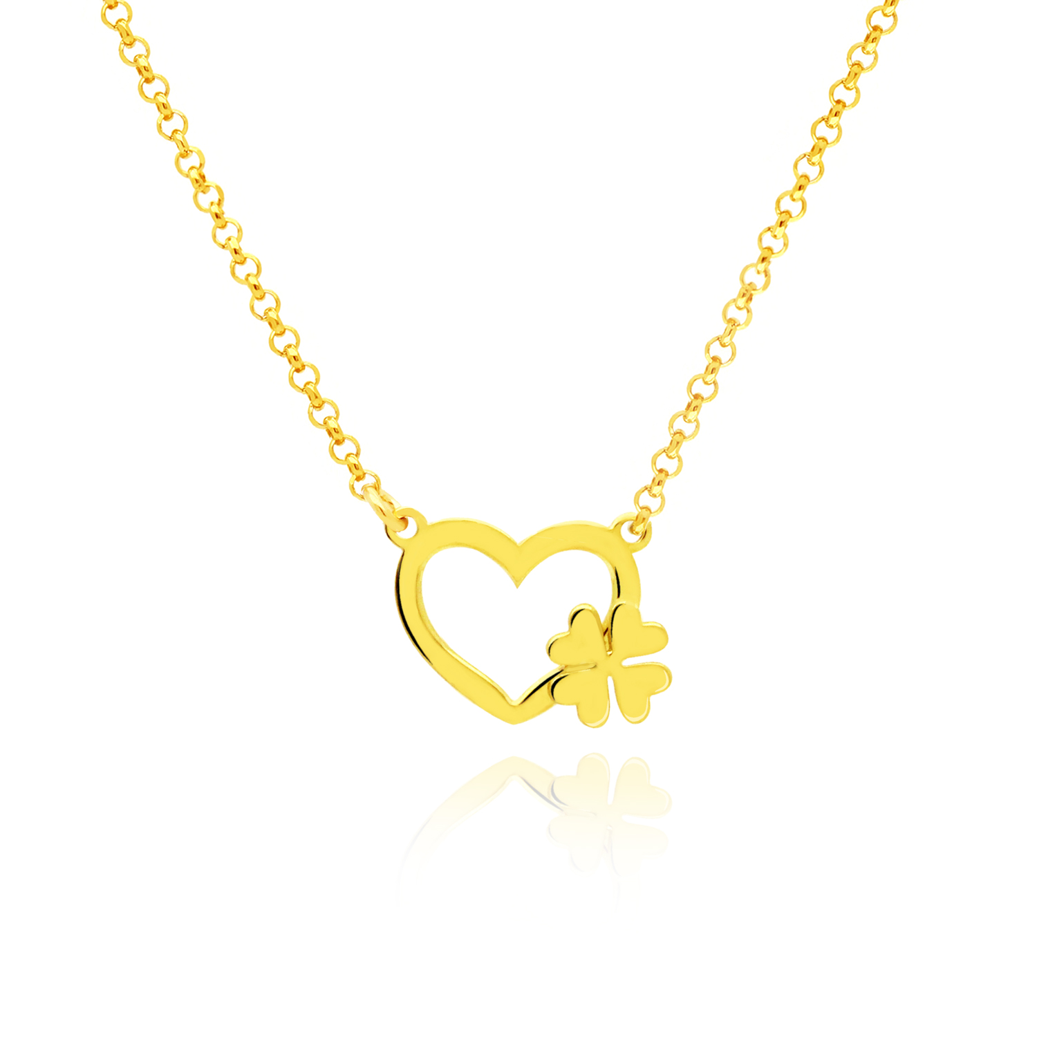 Naszyjnik serduszko z koniczynką srebrny pozłacany wykonany z najwyższej próby srebra 925 – bez niklu, nie uczula. Biżuteria dodatkowo pokryta 3 warstwami 24 karatowego złota. Naszyjnik składa się z łańcuszka o splocie rolo o regulowanej długości 40-45cm oraz serduszka o wysokości; 11mm. Wyrób jubilerski wysokiej jakości wykonany przez mistrzów jubilerstwa z ogromną precyzją oraz dbałością o detale.