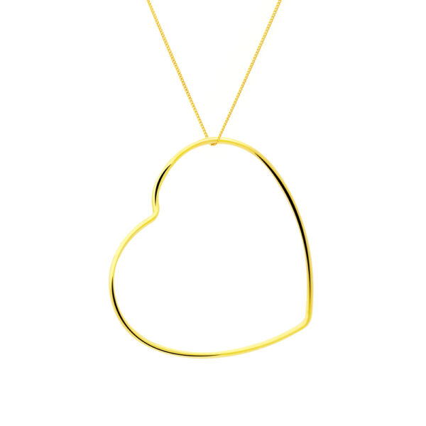 Naszyjnik Duże Serce wykonany z najwyższej Próby Srebra 925 – bez dodatku niklu, nie uczula. Naszyjnik pokryty 3 warstwami 24 karatowego złota. Długość naszyjnika: 61 cm. Wielkość Serca: 79x73mm.