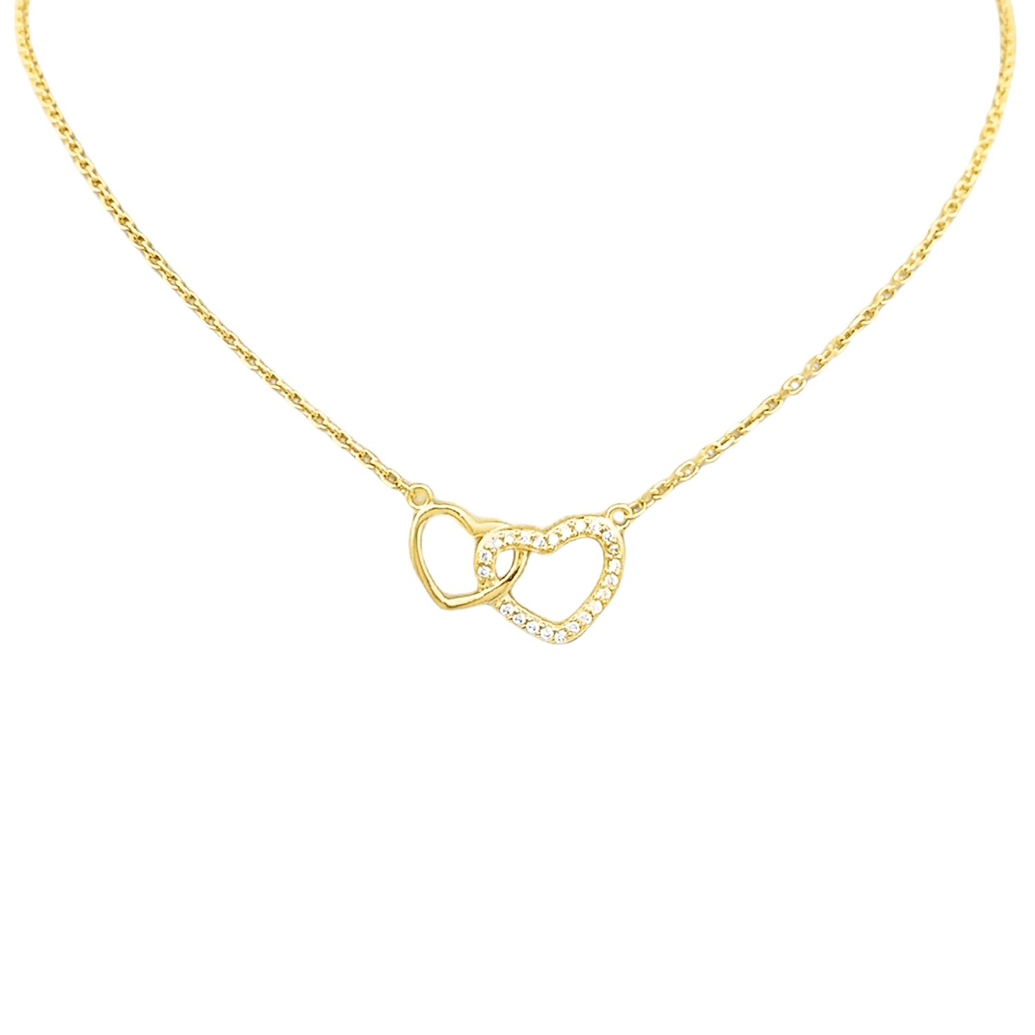 Naszyjnik srebrny pozłacany serca cyrkonie to harmonijne połączenie dwóch przenikających się konturów – jednego gładkiego, drugiego wysadzanego lśniącymi cyrkoniami. Subtelny łańcuszek ankier podkreśla centralny motyw, a ciepły odcień złocenia nadaje całości luksusowego charakteru. Precyzyjne oprawy kamieni i perfekcyjne wykończenie tworzą biżuterię pełną blasku i elegancji.
