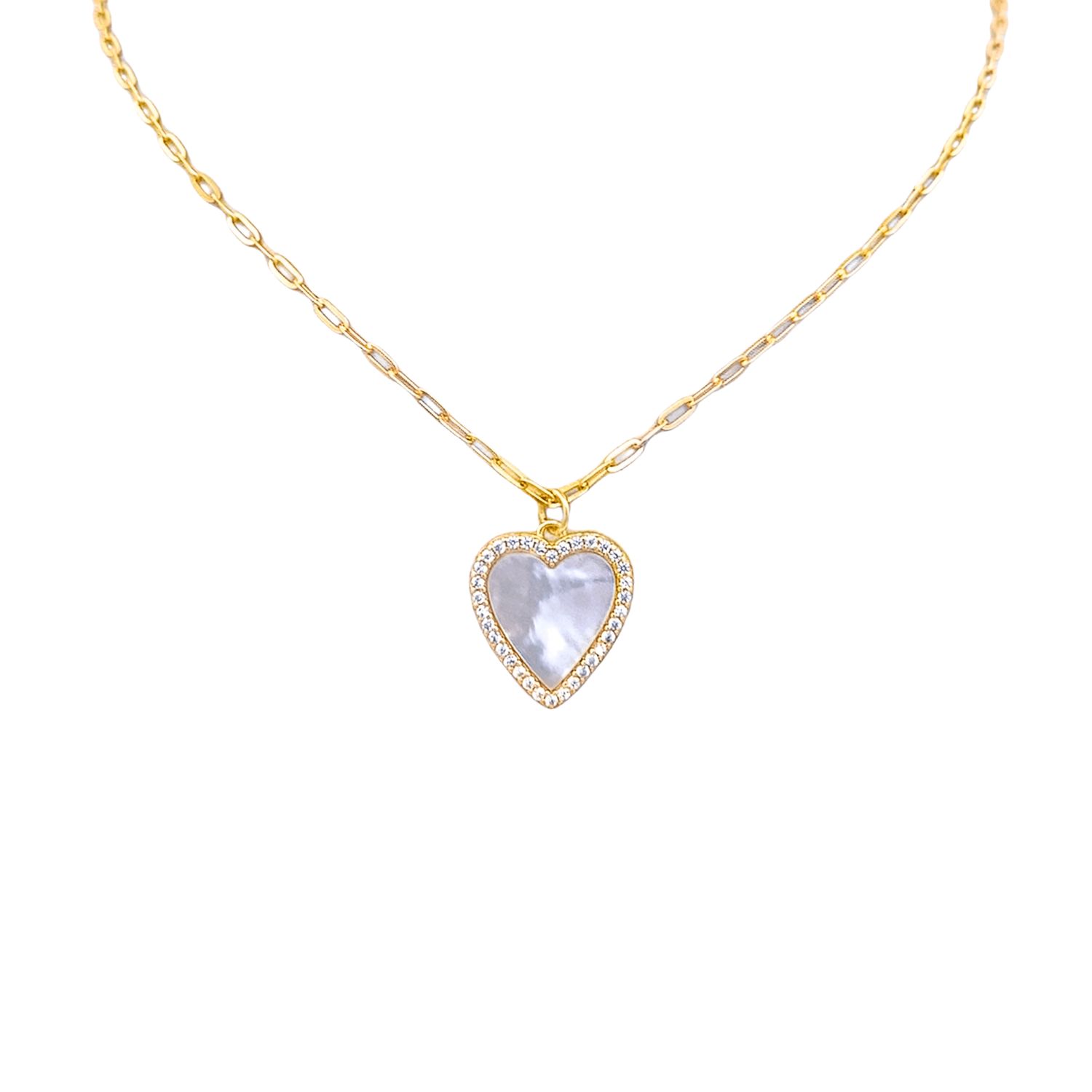 Naszyjnik srebrny pozłacany serce cyrkonie i masa perłowa – harmonia światła, blasku i perłowej subtelności