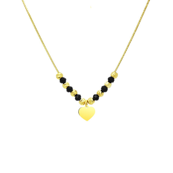 Naszyjnik srebrny pozłacany serce z czarnymi koralikami