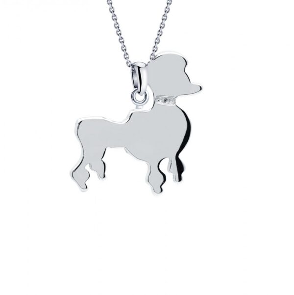 Naszyjnik wykonany ze srebra próby 925, dodatkowo uszlachetniony rodem. Zawieszka w kształcie pieska. Długość naszyjnika 42-44 cm. Wielkość zawieszki około 20×20 mm.