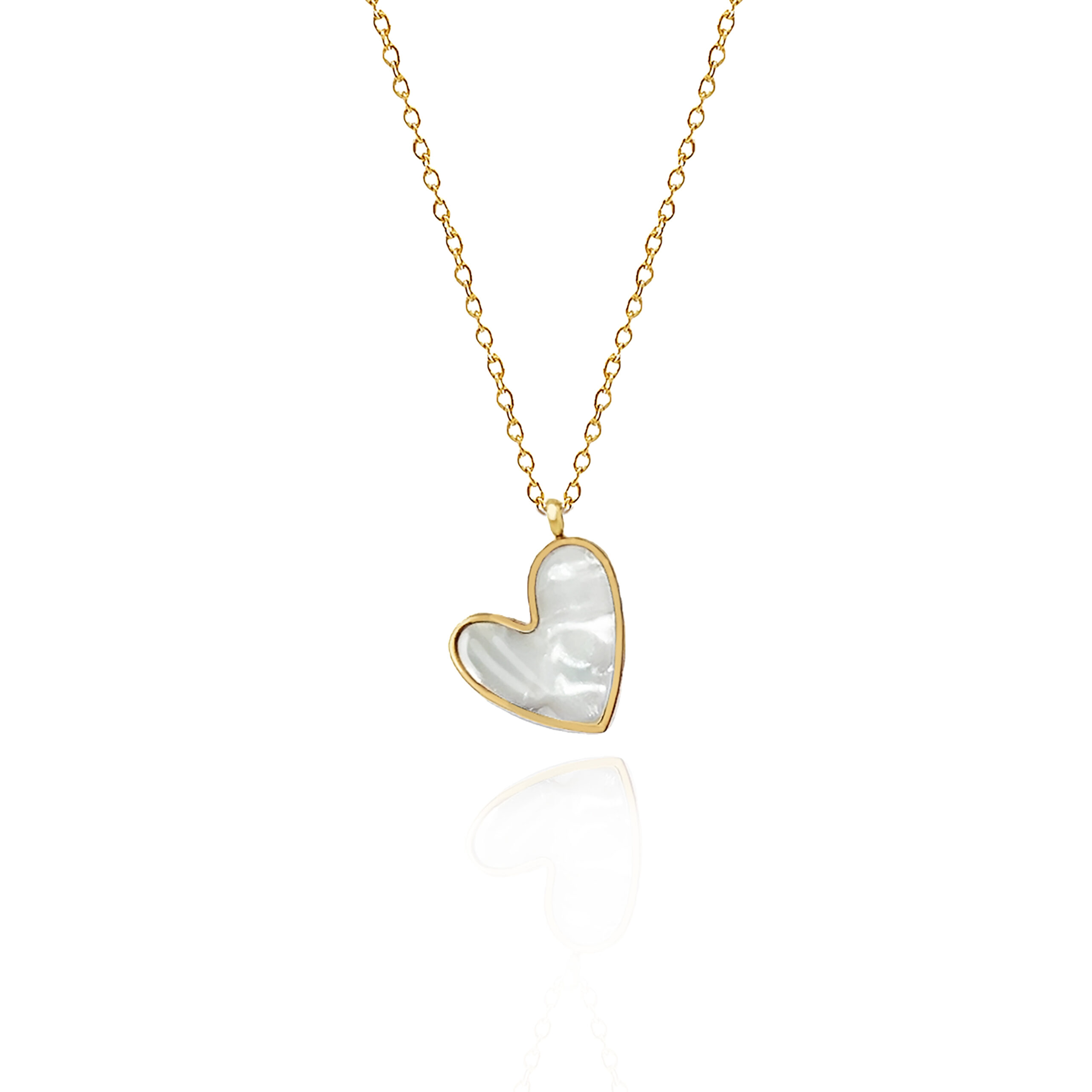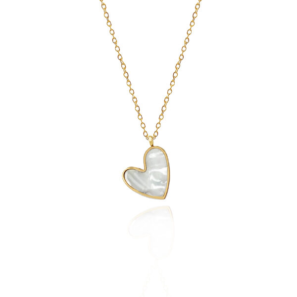 Naszyjnik z białym perłowym serduszkiem złoty stal szlachetna
