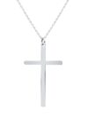 Naszyjnik z zawieszką w kształcie krzyżyka, wykonany ze srebra uszlachetnionego rodem próby 925. Wielkość zawieszki: 40×25 mm. Długość naszyjnika 45 cm.