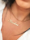 Naszyjnik z imieniem nada Twojej stylizacji osobistego charakteru. Biżuteria modowa zachwyca swoją wyrazistością a zarazem delikatnością przepięknie podkreślając dekolt. Biżuteria z imieniem to absolutny hit sezonu, lubiany i noszony przez celebrytów oraz influancerów.