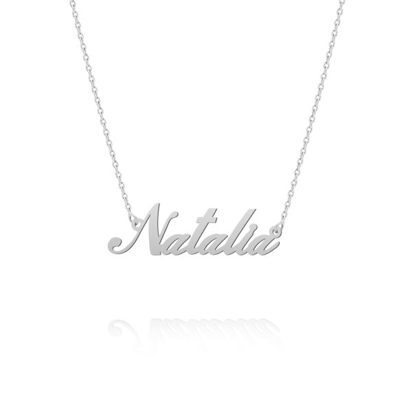 Naszyjnik z imieniem NATALIA srebrny wykonany z najwyższej próby srebra 925 – bez dodatku niklu, nie uczula. Naszyjnik pokryty 3 warstwami szlachetnego rodu. Naszyjnik o splocie typu ankier regulowany o długości od 40 do 45 cm. Splot ankier jest jednym z najmocniejszych splotów, odpornym na zerwanie oraz uszkodzenia. Zawieszka z imieniem NATALIA o wymiarach 11x37mm o gładkiej, błyszczącej powierzchni, która ślicznie odbija światło. Wyrób jubilerski wysokiej jakości wykonany przez mistrzów jubilerstwa z ogromną precyzją oraz dbałością o detale.