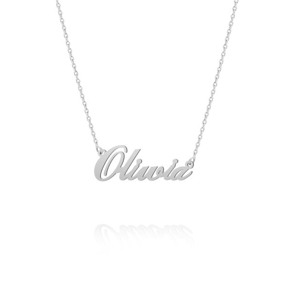 Naszyjnik z imieniem OLIWIA srebrny wykonany z najwyższej próby srebra 925 – bez dodatku niklu, nie uczula. Naszyjnik pokryty 3 warstwami szlachetnego rodu. Naszyjnik o splocie typu ankier regulowany o długości od 40 do 45 cm. Splot ankier jest jednym z najmocniejszych splotów, odpornym na zerwanie oraz uszkodzenia. Zawieszka z imieniem OLIWIA o wymiarach 11x31mm o gładkiej, błyszczącej powierzchni, która ślicznie odbija światło. Wyrób jubilerski wysokiej jakości wykonany przez mistrzów jubilerstwa z ogromną precyzją oraz dbałością o detale.