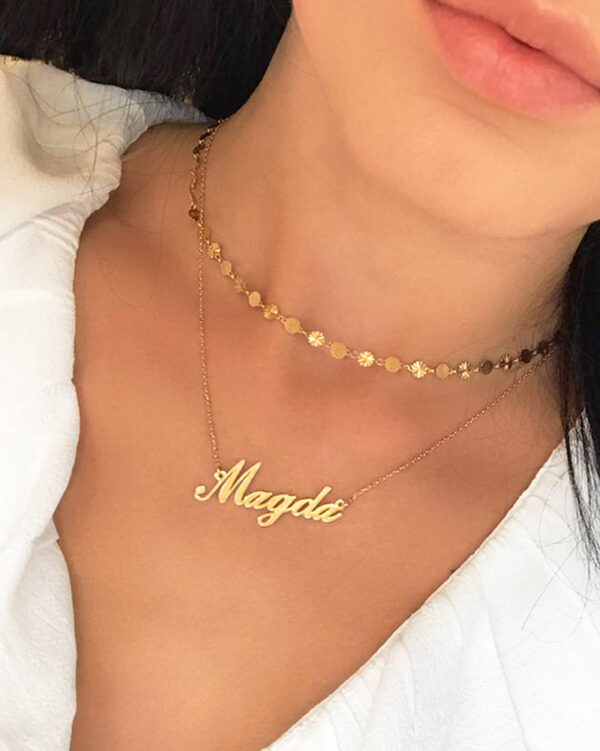Naszyjnik z imieniem nada Twojej stylizacji osobistego charakteru. Biżuteria modowa zachwyca swoją wyrazistością a zarazem delikatnością przepięknie podkreślając dekolt. Biżuteria z imieniem to absolutny hit sezonu, lubiany i noszony przez celebrytów oraz influancerów.