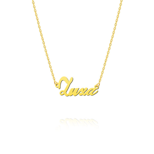 Naszyjnik z imieniem nada Twojej stylizacji osobistego charakteru. Biżuteria modowa zachwyca swoją wyrazistością a zarazem delikatnością przepięknie podkreślając dekolt. Biżuteria z imieniem to absolutny hit sezonu, lubiany i noszony przez celebrytów oraz influancerów.