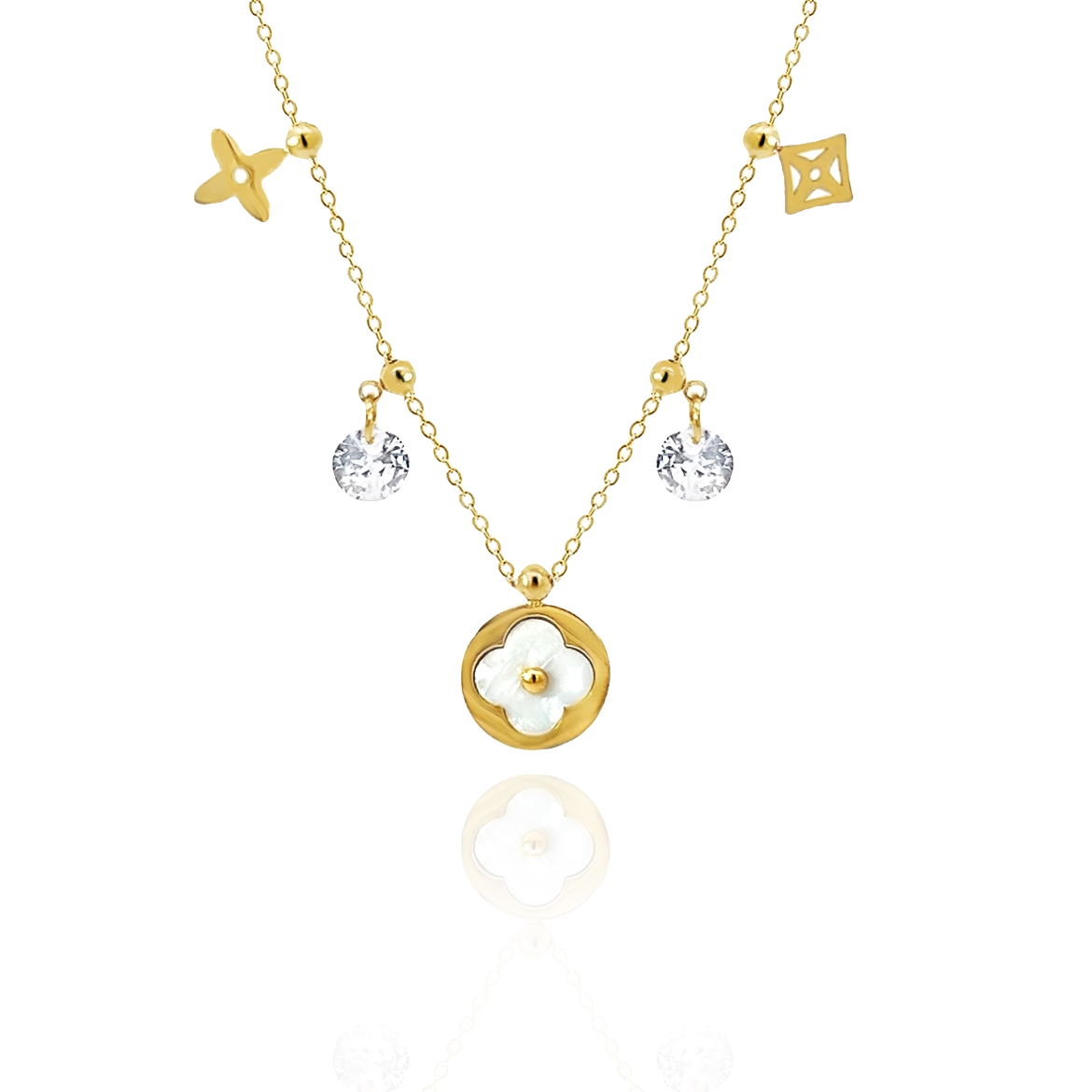 Naszyjnik z kryształkami i marokańską koniczynką złoty stal szlachetna