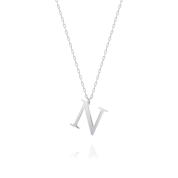 Naszyjnik z literką N srebrny. Biżuteria modowa wykonana z najwyższej próby srebra 925 – bez dodatku niklu, nie uczula. Naszyjnik dodatkowo uszlachetniony 3 warstwami szlachetnego rodu. Wielkość litery N: 15×19 mm. Literka N o strukturze gładkiej, polerowanej i błyszczącej, zawieszona na łańcuszku o splocie typu ankier, regulowanym o długości od 44 do 49 cm. Splot ankier o owalnych oczkach jest jednym z najmocniejszych splotów, odpornym na zerwania oraz uszkodzenia. Wyrób jubilerski wysokiej jakości wykonany przez mistrzów jubilerstwa z ogromną precyzją oraz dbałością o detale.
