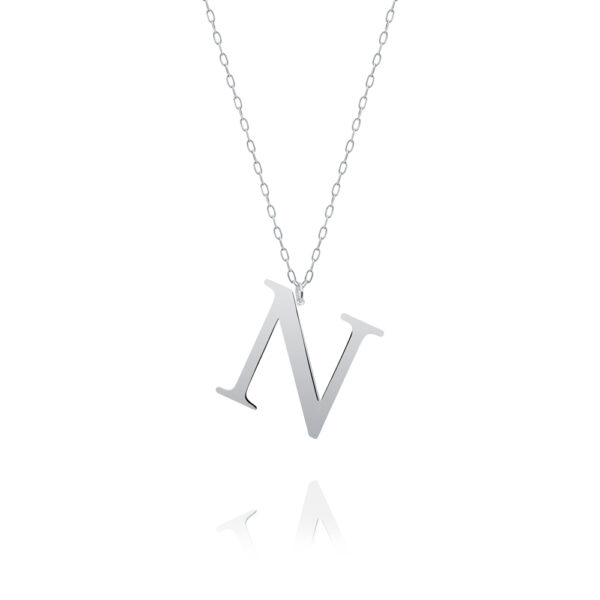 Naszyjnik z literką N srebrny. Biżuteria modowa wykonana z najwyższej próby srebra 925 – bez dodatku niklu, nie uczula. Naszyjnik dodatkowo uszlachetniony 3 warstwami szlachetnego rodu. Wielkość Litery N: 30×28 mm. Literka N o strukturze gładkiej i błyszczącej, zawieszona na łańcuszku o splocie typu ankier, regulowanym o długości od 44 do 49 cm. Splot ankier jest jednym z najmocniejszych splotów, odpornym na zerwania oraz uszkodzenia. Wyrób jubilerski wysokiej jakości wykonany przez mistrzów jubilerstwa z ogromną precyzją oraz dbałością o detale.