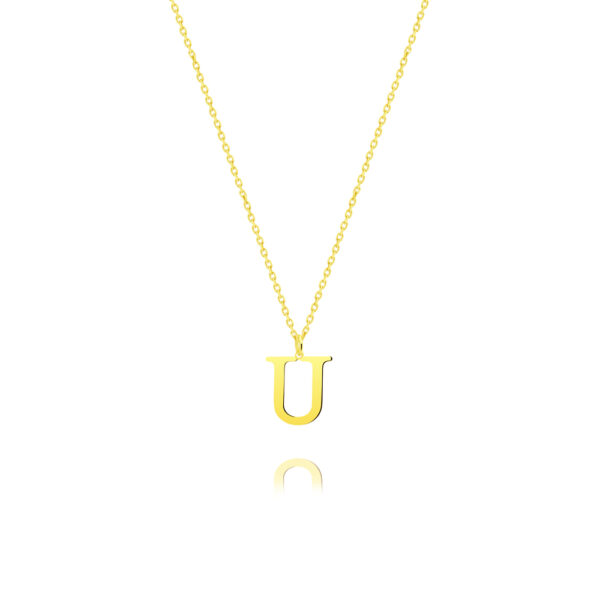 Naszyjnik z literką U srebrny pozłacany 1 cm