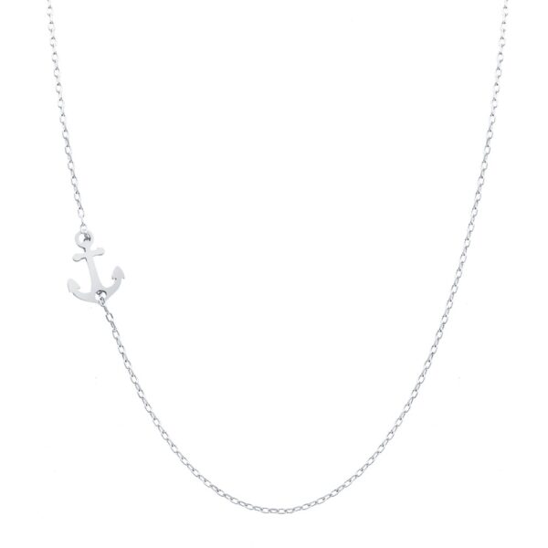Naszyjnik Celebrytka z zawieszką w kształcie kotwicy, wykonany ze srebra uszlachetnionego rodem próby 925. Kolekcja Marynarska to klasyka letniej mody, idealna na co dzień, a także na szczególne okazje. Wielkość zawieszki: 10×8 mm. Długość naszyjnika regulowana: 45-49 cm.