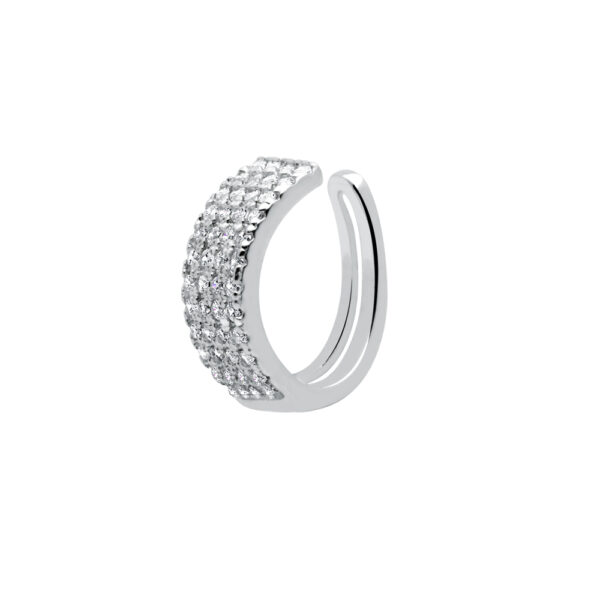 Kolczyk Nausznica wykonany ze srebra próby 925. Nausznica uszlachetniona warstwą rodu. Nausznica ozdobiona cyrkoniami. Wysokość nausznicy: 15 mm. Nausznica to nietypowa, bardzo modna i wygodna, nie zaciskająca ucha biżuteria. Nausznice to absolutny must have tego sezonu! Ich unikalna forma świetnie podkreśli Twoją stylizację ! Nausznica jest idealnym uzupełnieniem Twojej kolekcji biżuterii.