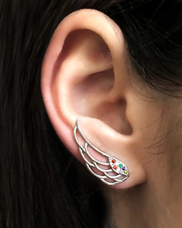 Nausznice skrzydła srebrne z kolorową cyrkonią